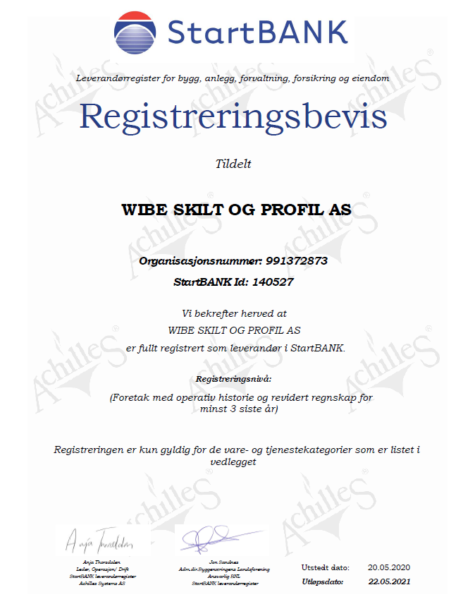 Vi er registrert i StartBANK leverandørregister, kategori skilt og dekor.